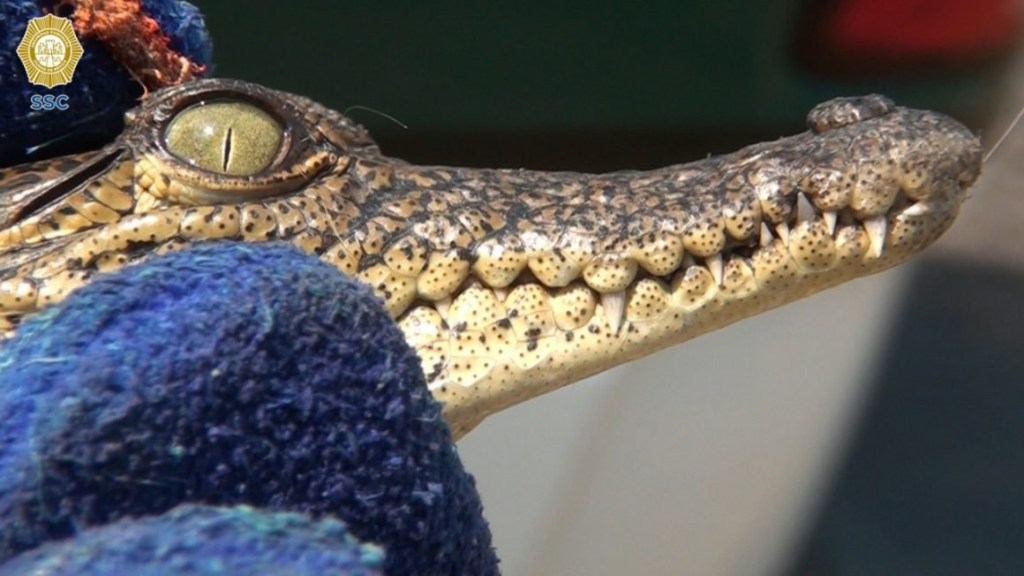Oficiales de la Brigada de Vigilancia Animal (BVA) de la Secretaría de Seguridad Ciudadana (SSC) de la Ciudad de México, rescataron a un espécimen de cocodrilo de la especie moreletii, que merodeaba por la banqueta en calles de la colonia Morelos, alcaldía Venustiano Carranza.