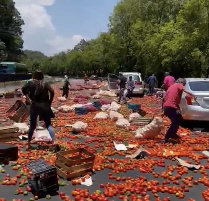 Esta tarde, un camión cargado con jitomate sufrió un accidente en la autopista México-Cuernavaca, dirección CDMX, a la altura del km 76.