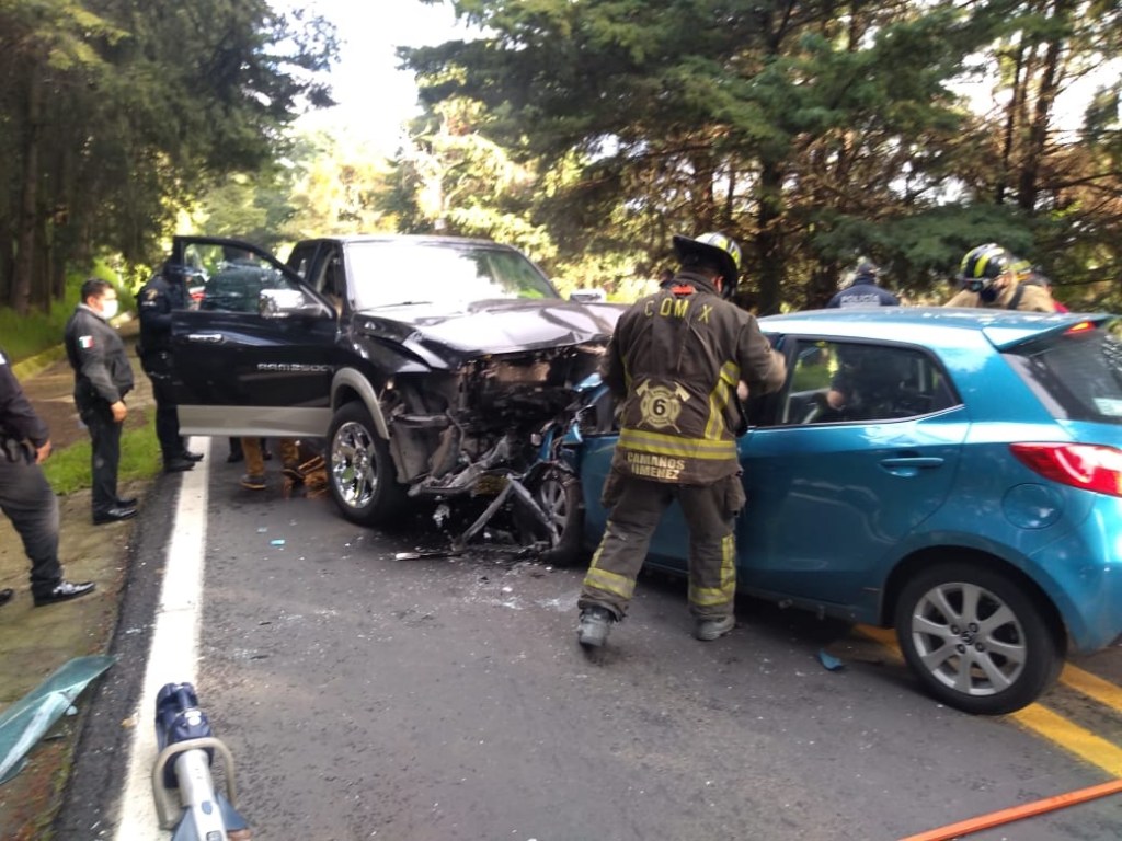 Se registra choque frontal entre camioneta y un auto en la carretera federal México-Cuernavaca, a la altura de Tlalpan. pic.twitter.com/PV2SrxEeyS