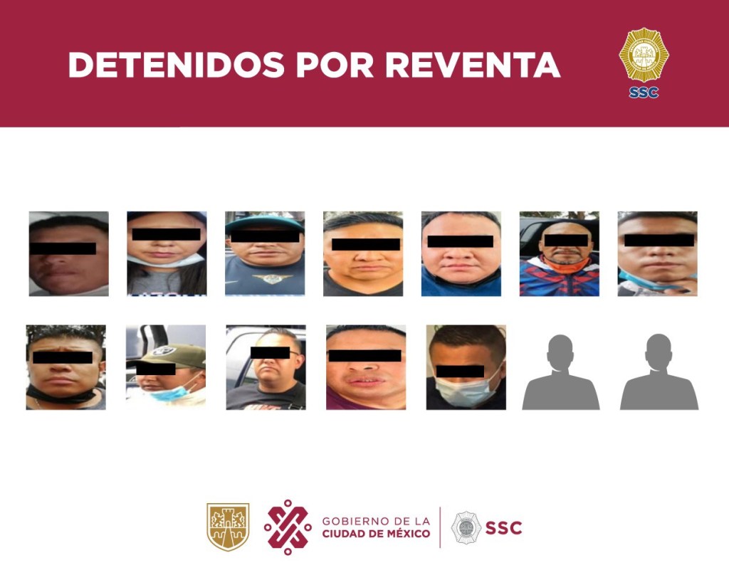 Como parte de las acciones implementadas para el combate a la reventa, los oficiales detuvieron a 14 personas, entre ellas dos menores de edad, a quienes tras una revisión preventiva realizada en apego al protocolo de actuación policial, se les aseguraron 69 boletos.