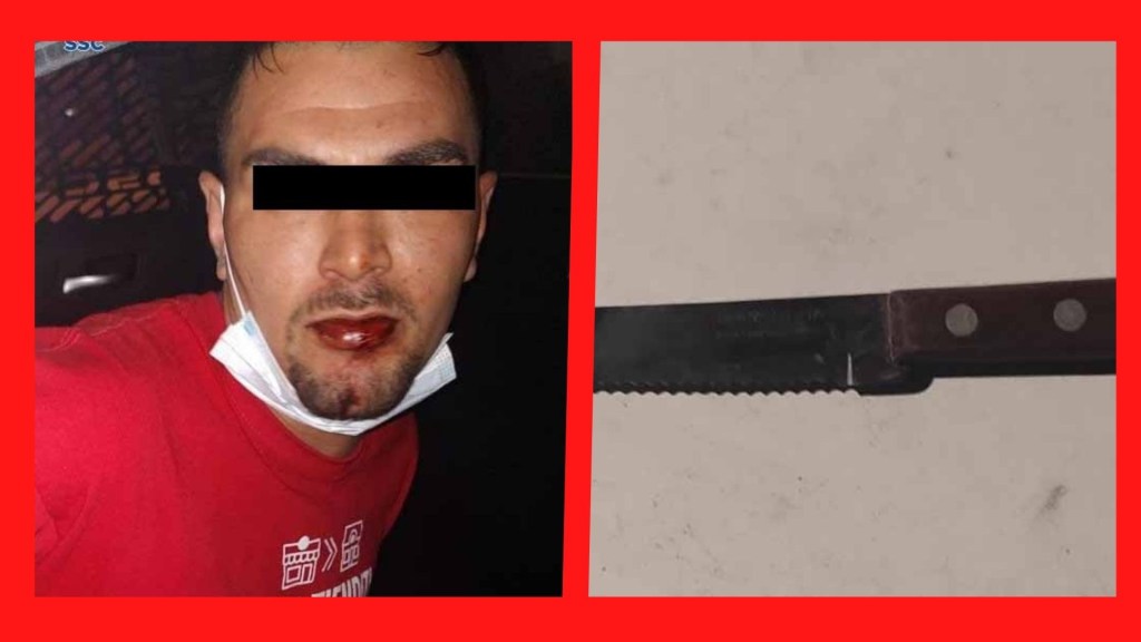 Testigos de lo sucedido proporcionaron las características del posible responsable. Asimismo, con apoyo de los operadores del C2 Sur, a través de las cámaras de videovigilancia dieron seguimiento al implicado, quien fue detenido calles más adelante, y tras realizarle una revisión preventiva conforme a los protocolos de actuación policial, se le encontró un cuchillo de aproximadamente 10 centímetros de largo.