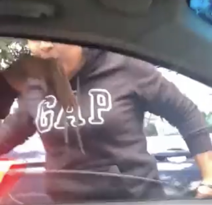 La víctima compartió el video en el que se observa a una mujer que se acerca al vehículo y agrede al conductor, mientras le dice “pu.. hambreado de mier..” , él le contesta que se vaya a su coche, pero ella continúa agrediendo hasta que le tira el celular.