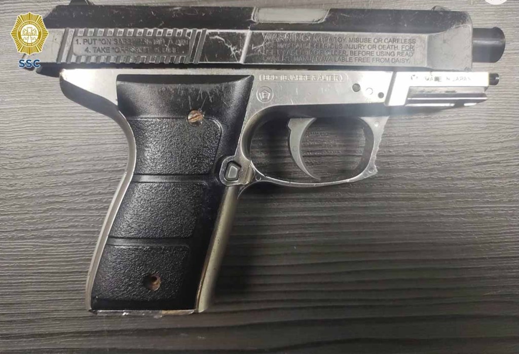 De manera inmediata, los oficiales implementaron un dispositivo de búsqueda y localización del vehículo y los posibles implicados, a quienes interceptaron en la calle José María Parras, colonia Juan Escutia, por lo que les marcaron el alto y como marca el protocolo de actuación policial, les realizaron una revisión de seguridad, tras la cual se les aseguró una réplica de arma de fuego corta y 15 mil pesos, los cuales las denunciantes reconocieron como de su propiedad.