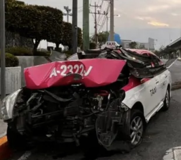 Un taxi que transitaba por los carriles centrales se impactó contra un señalamiento vial dejando a dos personas lesionadas. Paramédicos accedieron al lugar y determinaron que tenían que ser trasladados al hospital.
