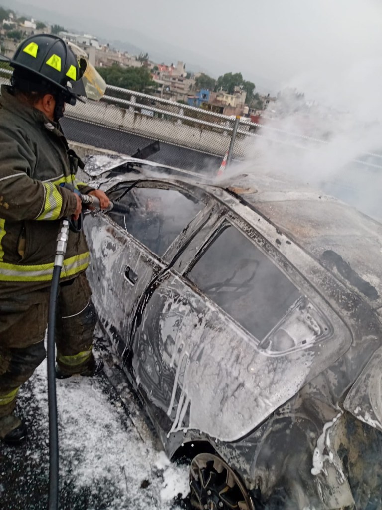 Bomberos acudieron por el incendio de un vehículo en donde resultó una persona lesionada. Al lugar llegaron para médicos de Cruz Roja quienes revisaron a la víctima, quien no ameritó ser trasladada al hospital.
