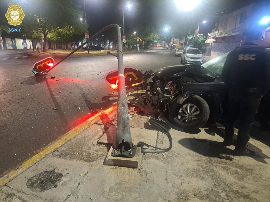 Oficiales de la Secretaría de Seguridad Ciudadana (SSC) de la Ciudad de México, detuvieron a una mujer, probable responsable de chocar su vehículo y derribar el semáforo ubicado en el cruce de las calles Talismán y Granito, en la colonia Tres Estrellas, de la alcaldía Gustavo A. Madero.