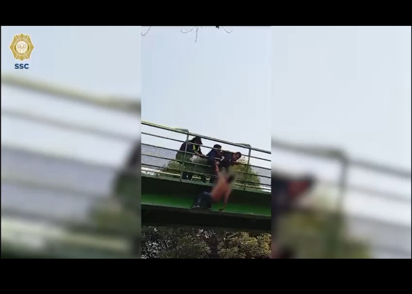 Policías de la Secretaría de Seguridad Ciudadana (SSC) de la Ciudad de México, evitaron que una persona atentara contra su integridad física, quien pretendía saltar desde lo alto de un puente peatonal, ubicado en la alcaldía Venustiano Carranza.