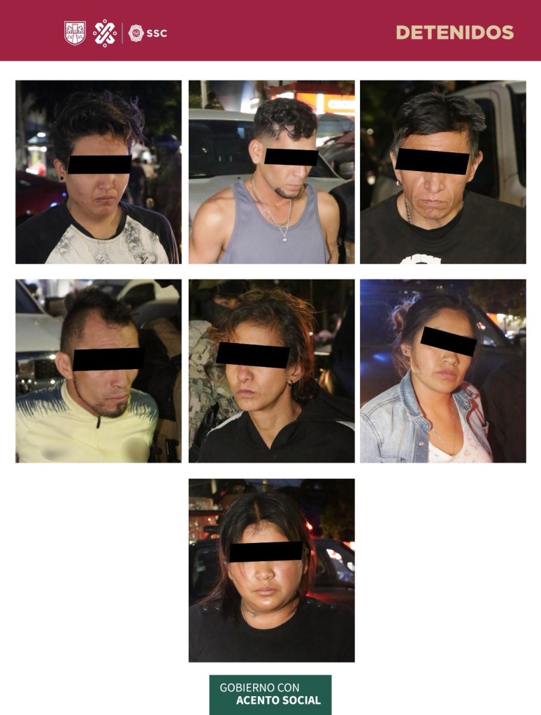 Por lo anterior, el miércoles 19 de junio, policías de la SSC en coordinación con personal de la Secretaría de Marina Armada de México (SEMAR) realizaron un despliegue operativo en la zona, donde fueron detenidas cuatro mujeres de 23, 30, 31 y 34 años de edad; y tres hombres de 47, 38 y 30 años, éste último que dijo ser ciudadano venezolano.