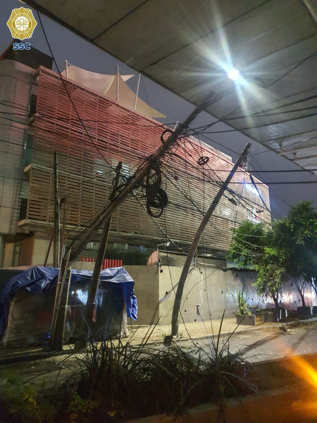 En la alcaldía Miguel Hidalgo, policías de la Secretaría de Seguridad Ciudadana (SSC) de la Ciudad de México, realizan labores de vialidad y en coordinación con personal de Protección Civil (PC) y Del Heroico Cuerpo de Bomberos para, retiran el cableado que cayó sobre los carriles centrales y laterales de la avenida Periférico, a la altura de la calle Horacio, en la colonia Polanco.