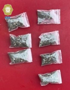 Luego de una revisión preventiva realizada en apego a los protocolos de actuación policial, le fueron aseguradas siete bolsitas de plástico que contenían un vegetal verde y seco con las características de la marihuana.