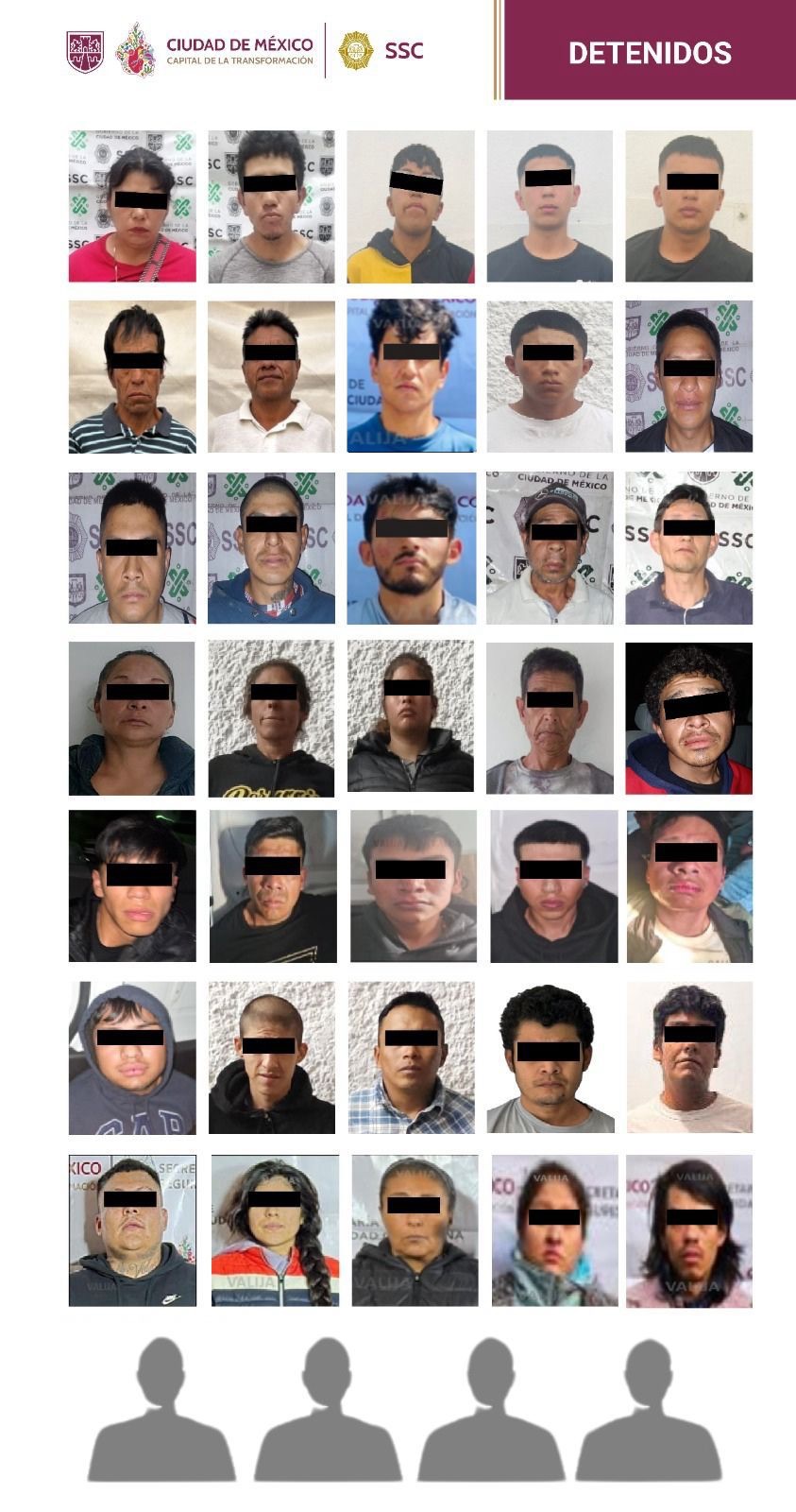 Resultado de los despliegues operativos para el combate de delitos de alto impacto en la alcaldía Iztapalapa, personal de la Secretaría de Seguridad Ciudadana (SSC) de la Ciudad de México, entre el 16 y el 22 de noviembre, detuvo a 39 personas en 20 acciones en flagrancia, cateos y al dar cumplimiento a un mandamiento judicial.