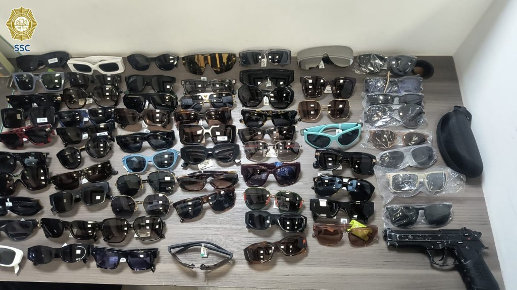 En apego al protocolo de actuación policial, a los dos posibles implicados les realizaron una revisión preventiva, tras la cual les aseguraron dos réplicas de arma de fuego y 66 pares de lentes de diversas marcas con un valor aproximado de 520 mil pesos.