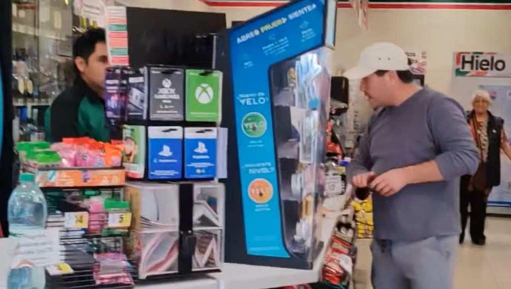 De acuerdo con el material difundido, el sujeto reaccionó violentamente luego de que el empleado no tuviera cambio para un billete de 500 pesos, con el cual pretendía pagar una dona. Además de insultar y agredir al trabajador, el hombre también ofendió a una mujer que intervino para defender al cajero.