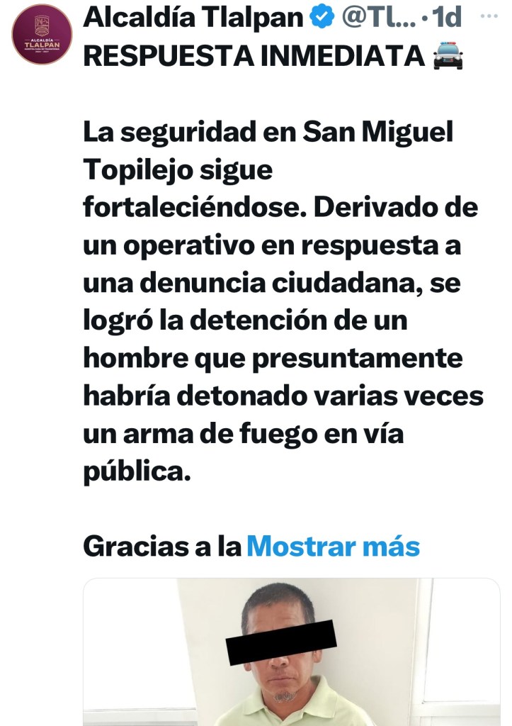 De acuerdo con la Secretaría de Seguridad Ciudadana (SSC) de la CDMX, la detención se llevó a cabo tras una denuncia ciudadana que alertó sobre una persona realizando detonaciones en un rancho cercano a la calle Margarita.