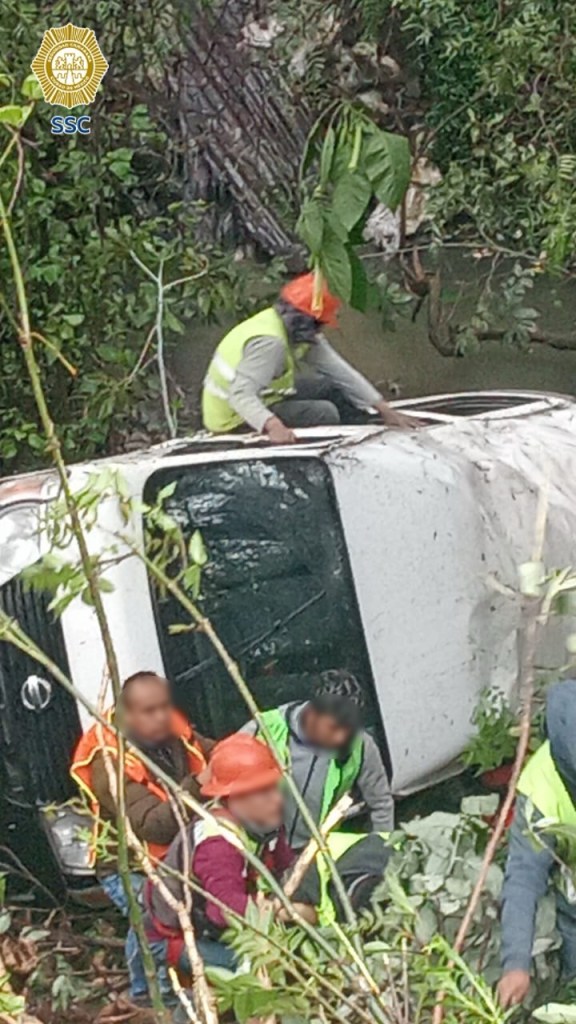 Ciudad de México, 8 de julio de 2025. — Elementos de la Secretaría de Seguridad Ciudadana (SSC) de la Ciudad de México auxiliaron en las labores de rescate luego de que una camioneta que transportaba a 18 personas cayera a un barranco en calles de la alcaldía Álvaro Obregón.