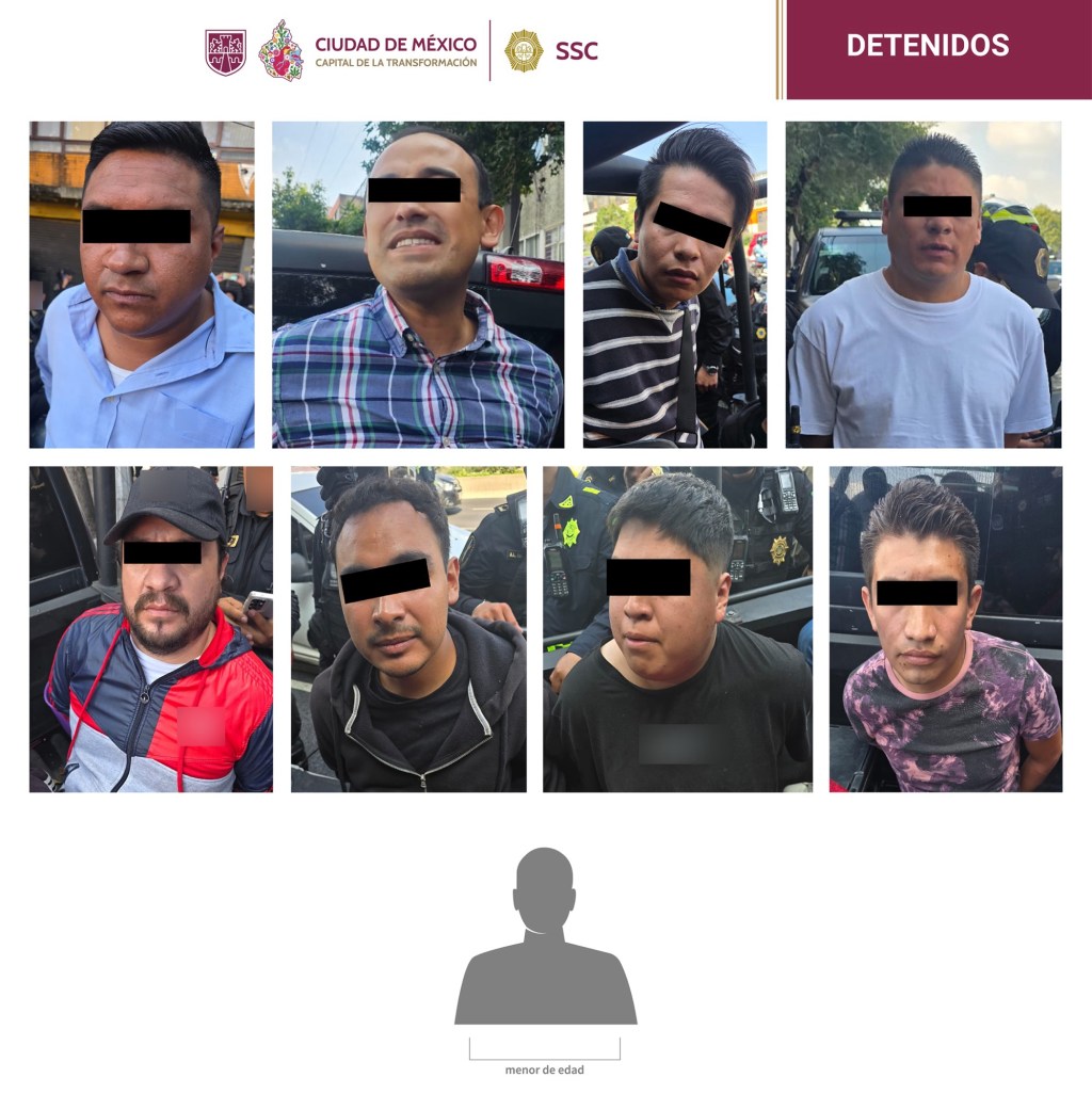 Ciudad de México, 14 de agosto de 2025 — Elementos de la Subsecretaría de Control de Tránsito y de la Policía Metropolitana de la Secretaría de Seguridad Ciudadana (SSC) de la Ciudad de México detuvieron a ocho hombres y una mujer que impedían el libre tránsito en Calzada de Tlalpan, a la altura de la estación Viaducto del Metro.