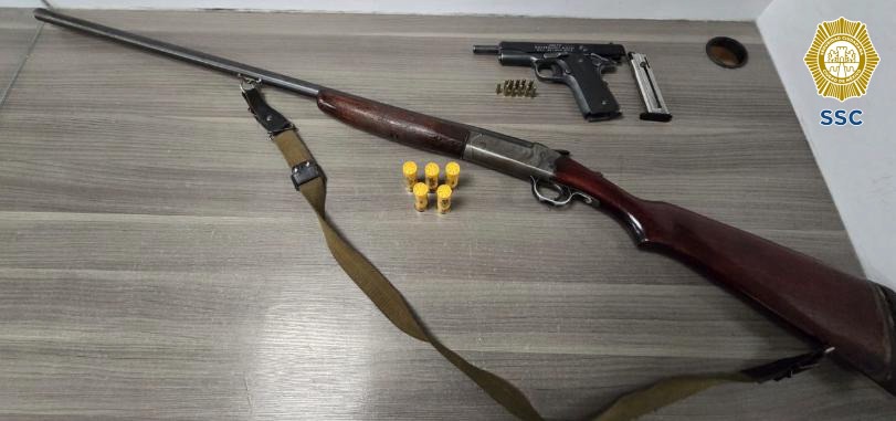Durante la revisión preventiva, realizada conforme a los protocolos de actuación policial, los oficiales aseguraron un arma de fuego corta, una larga, un cargador y 15 cartuchos útiles, sin que los implicados pudieran acreditar su portación legal.