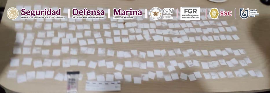 - Unidad Habitacional Santo Domingo, colonia La Preciosa: 500 dosis de cocaína, dos identificaciones, cinco celulares y tres detenidos (dos hombres de 29 y 25 años y una mujer de 50).