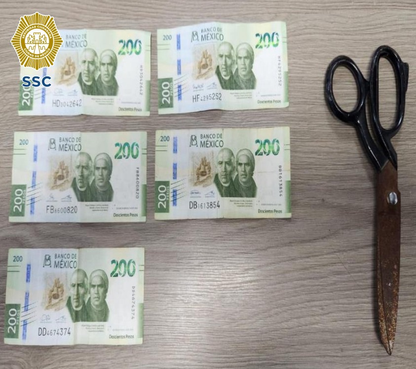 Durante la inspección, los oficiales localizaron al presunto agresor cuando intentaba saltar hacia otro domicilio. El hombre fue asegurado de inmediato y, tras una revisión preventiva conforme al protocolo policial, se le encontraron las tijeras de aproximadamente 25 centímetros y el dinero robado.
