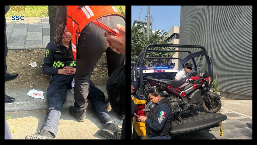 Personal de la Secretaría de Seguridad Ciudadana (SSC) de la Ciudad de México detuvo a un hombre presuntamente involucrado en la agresión a un oficial, durante un percance vial registrado entre una motocicleta y una bicicleta en la colonia Crédito Constructor, alcaldía Benito Juárez.