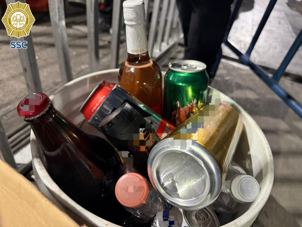 Como parte de los filtros de revisión en calles aledañas al primer cuadro, los policías retiraron botellas de bebidas alcohólicas, latas de cerveza, envases de vidrio, desodorantes en aerosol, perfumes y paraguas, considerados objetos prohibidos para el evento.