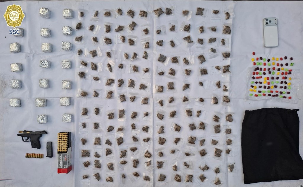 Tras marcarles el alto y realizar una revisión preventiva, los uniformados aseguraron 155 bolsitas con posible marihuana, 20 empaques adicionales con la misma hierba y 91 dosis de aparente cocaína en piedra.