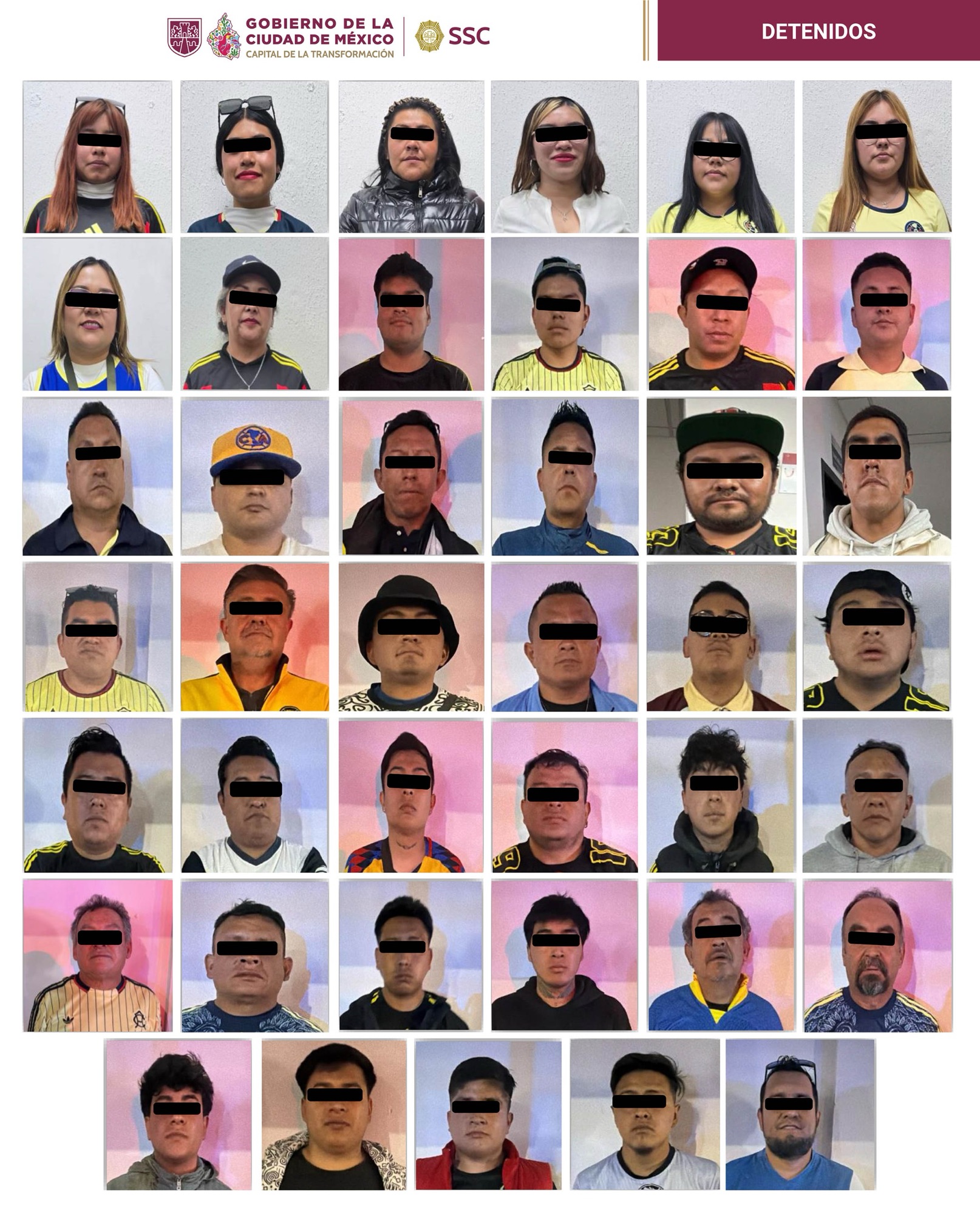 Elementos de la Secretaría de Seguridad Ciudadana (SSC) de la Ciudad de México detuvieron a siete personas por presunta reventa de boletos y a 41 aficionados por alterar el orden público, durante el operativo implementado por el partido entre el Club América y Nashville, realizado en el Estadio Banorte.