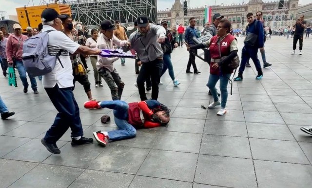 Riña en el Zócalo entre ambulantes y trabajadores del gobierno, previo al Grito.
